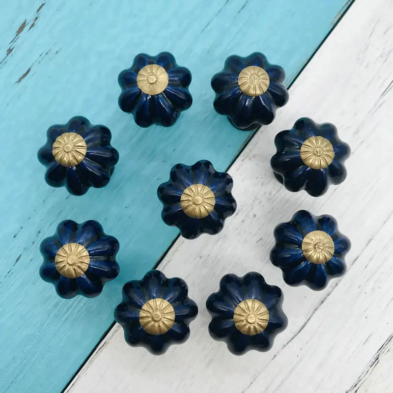 10 قطعة جديد الكوبالت الأزرق Pumpink السيراميك مقبض الباب مجلس الوزراء درج مقابض سحب المنزل الأثاث الزخرفية المقابض في مقابض للخزانات من تجميل المنزل على Buy Unohama Club Store