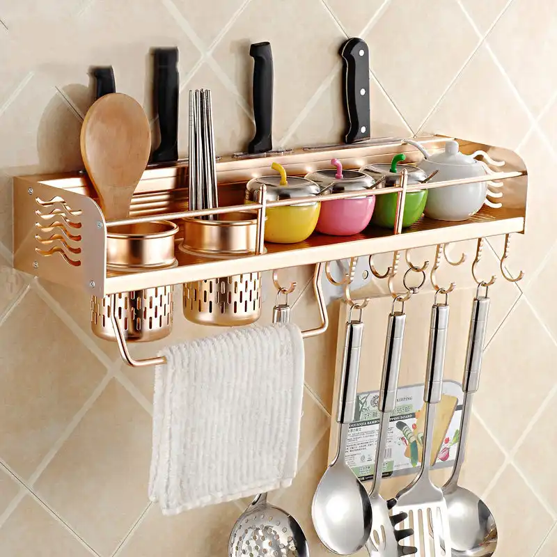 رف تخزين من Houmaid للمطبخ م زين بنكهة الألومنيوم حامل تخزين لأدوات الطهي حامل توابل ي ثبت على الحائط رفوف توابل من النوع رفوف المطبخ على الحائط Aliexpress