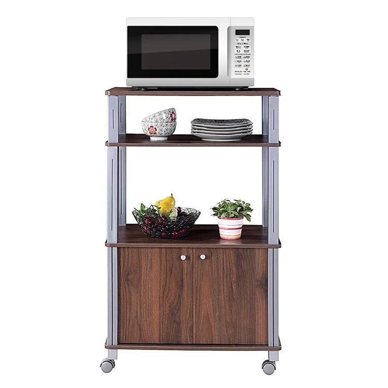 الخبازين الرف الميكروويف الوقوف المتداول وحدة تخزين مع عجلات 3 رفوف 2 باب خزانة مقاوم للماء P2 Mdf عربة مطبخ Hw60180 طاولات وعربات المطبخ Aliexpress