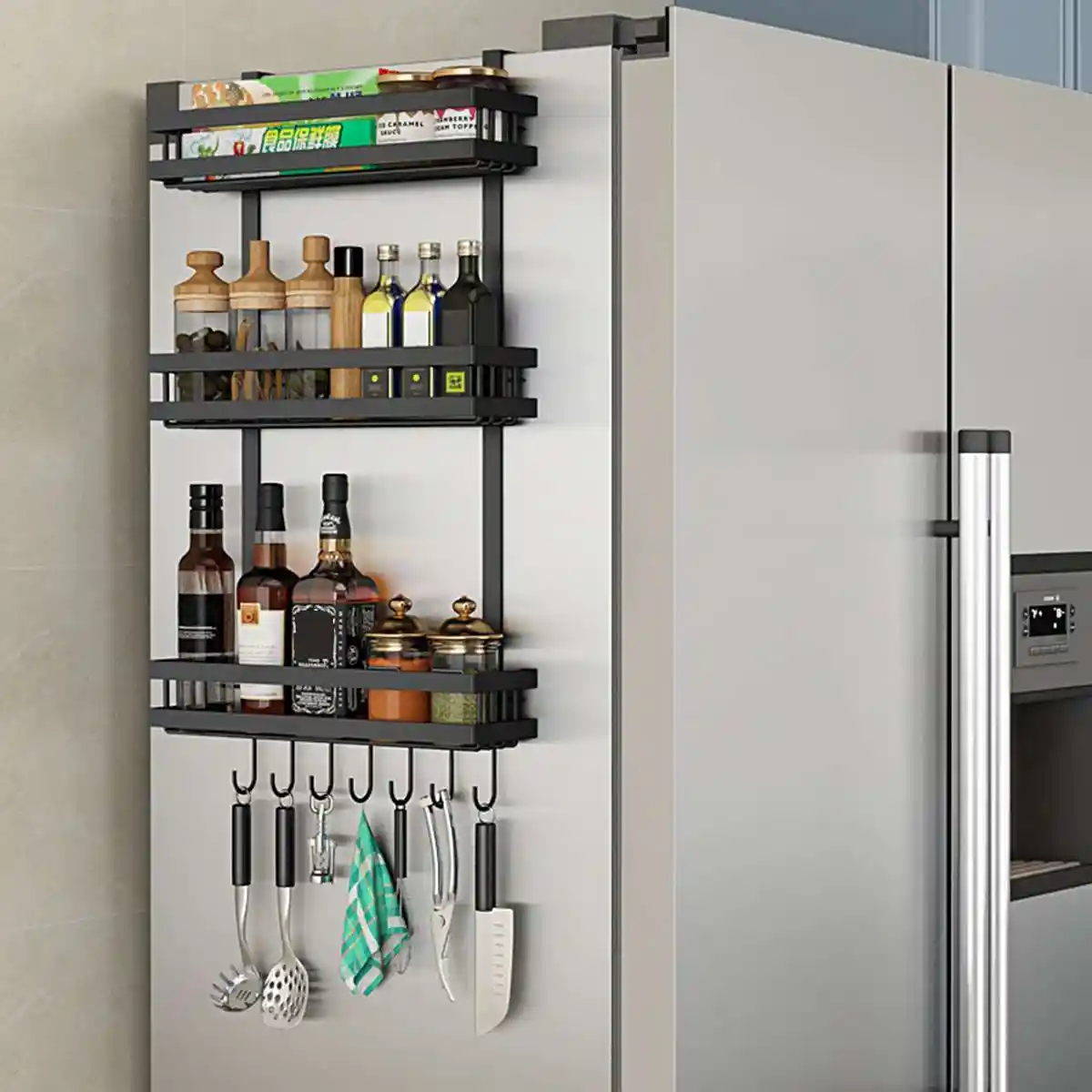 المغناطيسي التوابل تخزين حامل الإبداعية الامتزاز الثلاجة الجانب شماعات رف ورق المطبخ رف مناشف رف شماعات المنظم Aliexpress