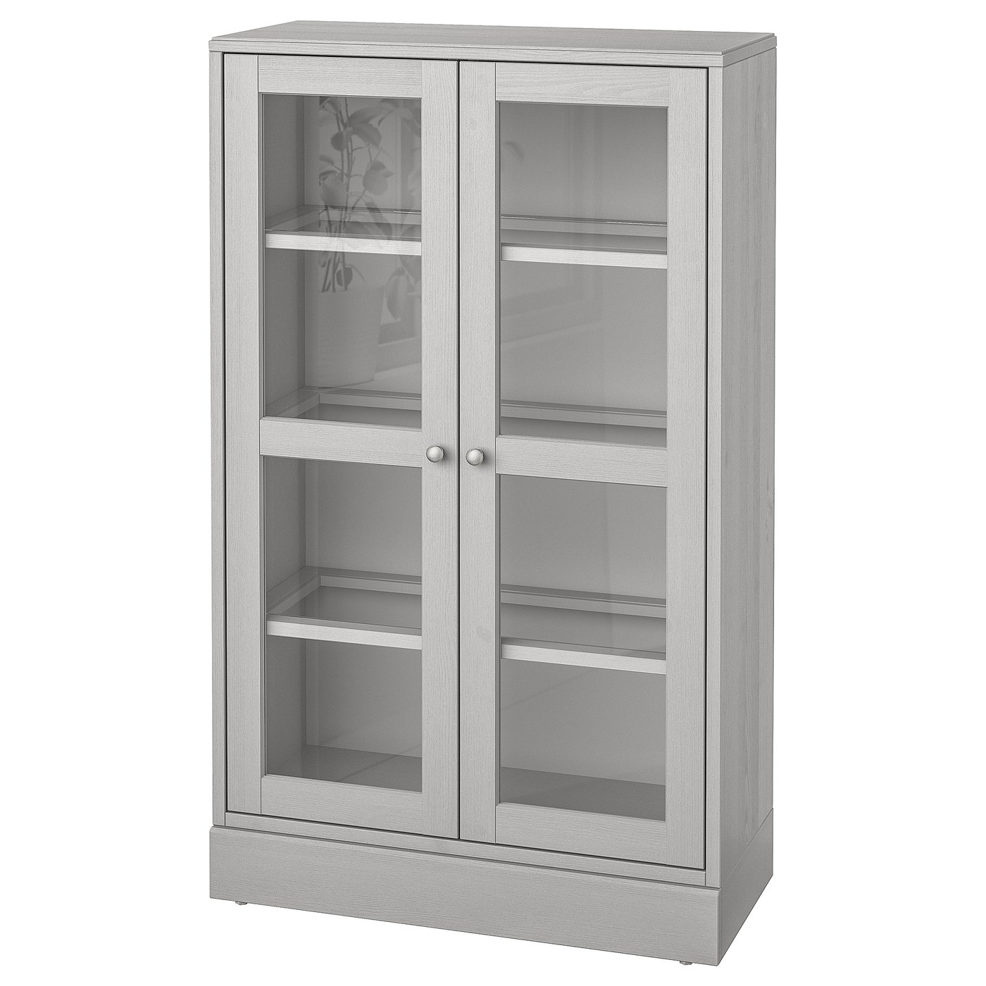 Havsta خزانة بباب زجاجي رمادي زجاج شفاف Ikea