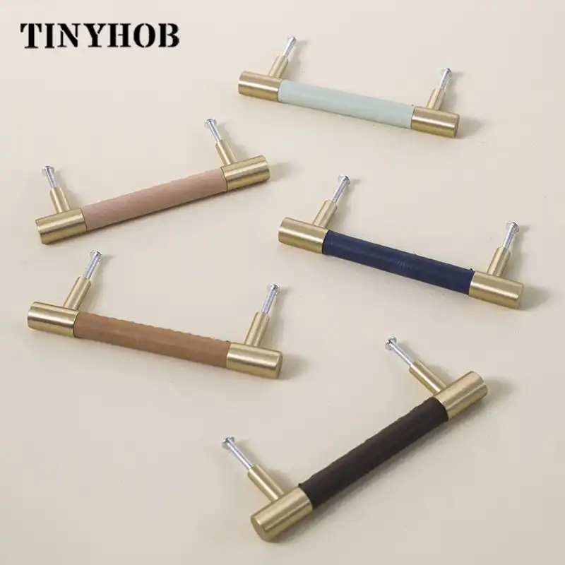 الجلود اليدوية النحاس مقابض درج مقابض خزانة مقبض باب المطبخ دولاب خزانة مقابض سحب الأجهزة والأثاث مقابض للخزانات Aliexpress