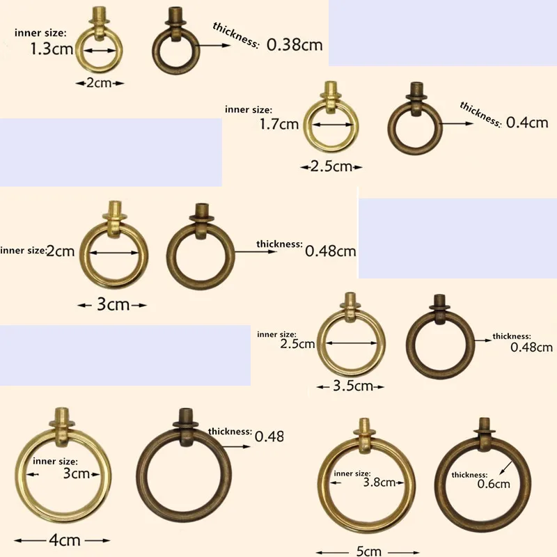 شراء خمر النحاس حلقة مستديرة مقابض سحب الأبواب مجلس الوزراء تسريحة مقابض أدراج ثقب واحد مقبض مسامير الصينية الأثاث الأجهزة 6 قطعة حديث