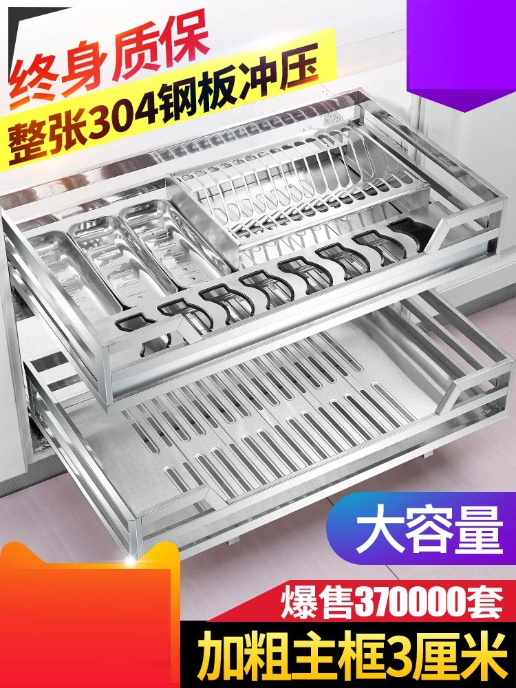 سحب سلة مطبخ خزانة درج تخزين التوابل رف مزدوج 304 صحن الفولاذ المقاوم للصدأ حوامل ورفوف Aliexpress