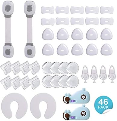 طقم حماية للأطفال أقفال متعددة الأغراض أقفال خزانة المطبخ 2 سدادات باب مقاومة للإمشاط 16 واقي زوايا شفافة 20 غطاء مقبس 4 مفاتيح Amazon Ae
