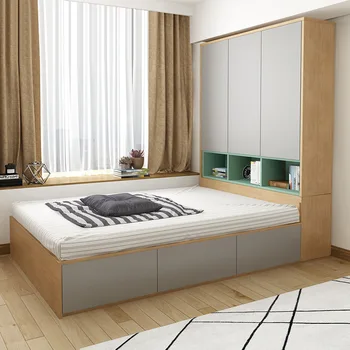 الشمال الحديثة الحد الأدنى سرير مزدوج 1 2 متر 1 5 متر تاتامي السرير لوحة خزانة السرير عالية صندوق سرير تخزين مع خزانة Leather Bag
