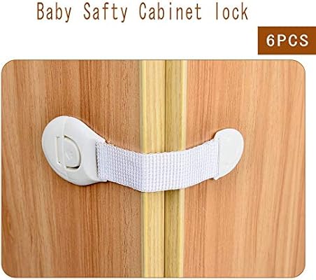 أقفال أمان Nexcurio المقاومة للأطفال قفل خزانة واقية للأطفال مع 3 مواد لاصقة إضافية 3m مزالج حزام قابل للتعديل إلى الخزائن والأدراج والفرن والخزانة والثلاجة ونافذة باب المقعد و6 قطع