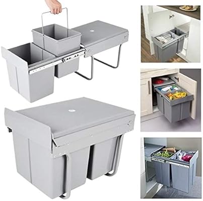 سلة مهملات المطبخ خزانة خزانة خزانة خزانة مطبخ قابلة لإعادة التدوير مع مقصورات مزدوجة 20 لتر هيكل معدني قوي مع لمسة نهائية من الفولاذ المقاوم للصدأ Amazon Ae