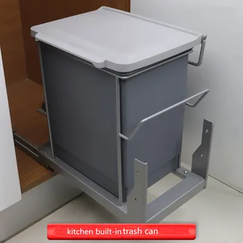 المدمج في المطبخ حاوية القمامة سلة مهملات إخفاء نمط سحب مزبلة الحديثة للطي صناديق القمامة المطبخ جودة عالية Leather Bag