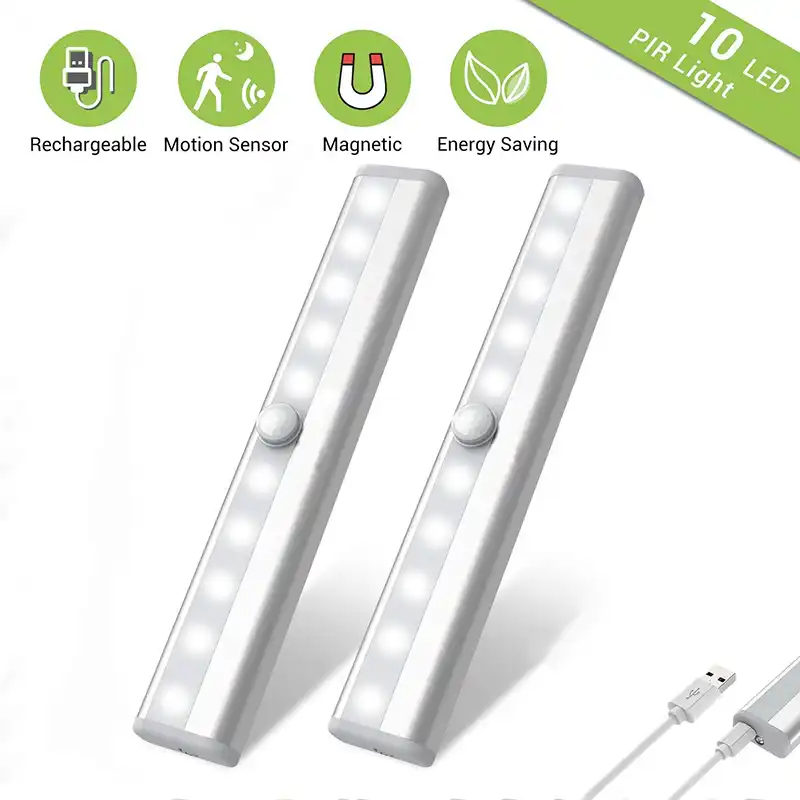Pir محس حركة تحت إضاءة الخزانات 10 Led ليلة مصباح Usb قابلة للشحن خزانة غرفة النوم ضوء مطبخ دولاب خزانة مصباح Aliexpress