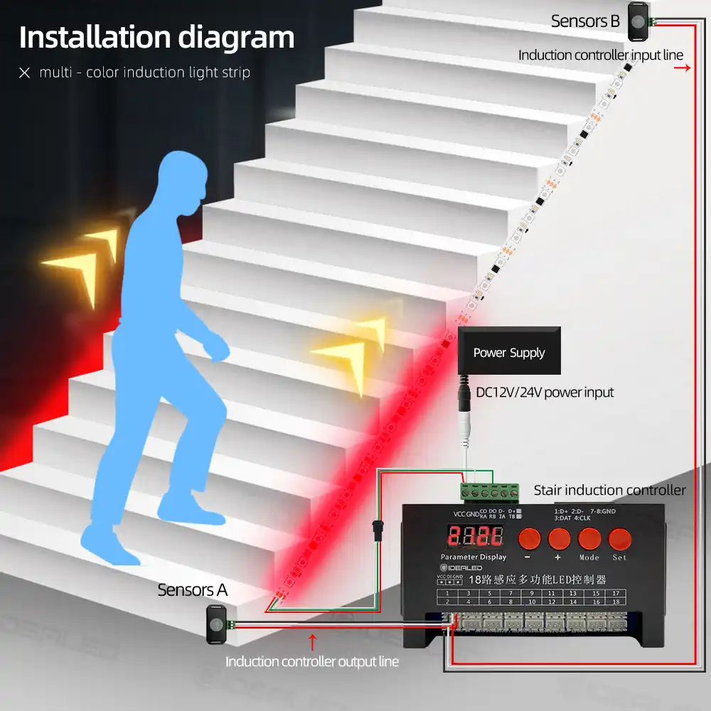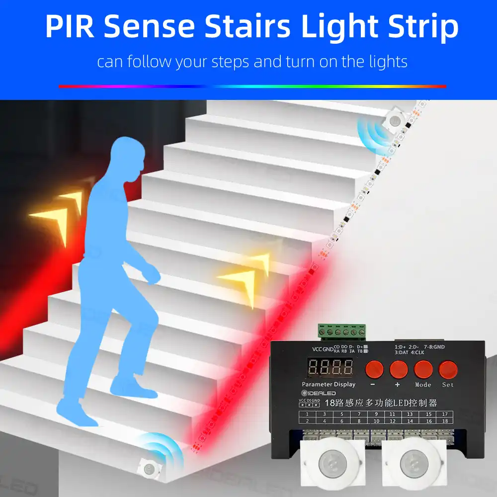 Led محس حركة شرائط مصباح درج تبسيط ضوء تحت خزانة ضوء الليل عنونة Led Rgb قطاع أضواء للدرج شرائط الليدات Aliexpress