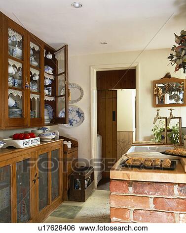 خزانة الجدار ب صقل صقل الأبواب إلى داخل الجزء الضيق من الظهر البلد جماعة الطهاة معرض الفوتوغراف U17628406 Fotosearch