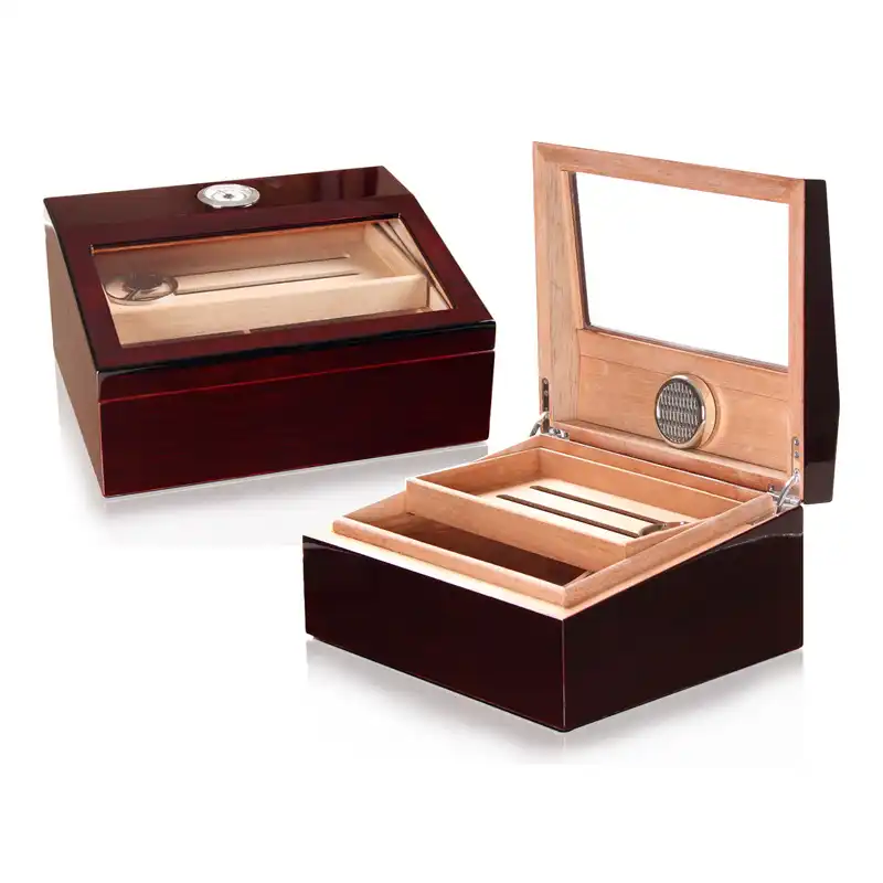 هافانا السيجار الجوز الخشب سطح المكتب مرطب عالية لامع السيجار صندوق ترطيب الزجاج العلوي السيجار عرض صندوق مرطب Aliexpress