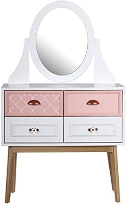 طقم خزانة ملابس مع مرآة وردي أبيض 87 X 45 X 146 سم Amazon Ae
