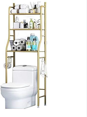 رف تخزين للمرحاض 3 طبقات فوق الأرفف بدون حفر سهل التجميع سعة عالية رف قوي للغاية موفر للمساحة ذهبي Amazon Ae