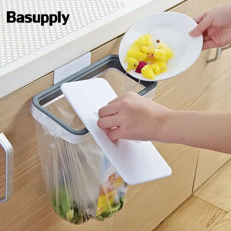 معلقة حاوية القمامة المطبخ الصغيرة سلة النفايات سلة مهملات مع غطاء للمطبخ خزانة باب خزانة لغرفة