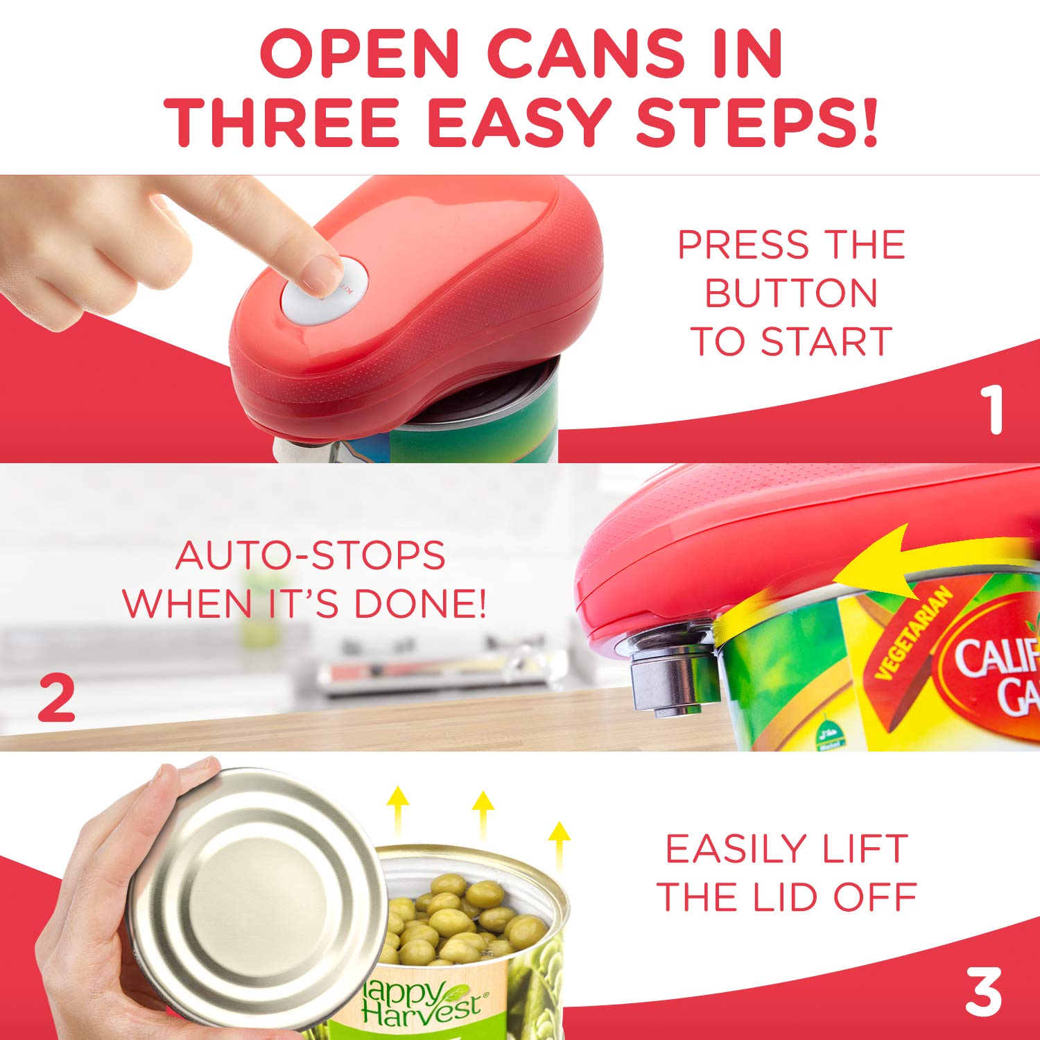 فتاحة علب كهربائية فتاحة علب المطعم فتاحة علب المطبخ تخلق حواف عادية وناعمة فتاحة علب بانغروي تلقائية مع مفتاح بلمسة واحدة أفضل خيار للشيف أحمر Fba Bsi 0301a Amazon Ae