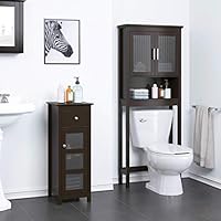 رف حمام منزلي من سبيرش فوق المرحاض منظم خزانة الحمام مع باب زجاجي مقسى بني داكن Amazon Ae