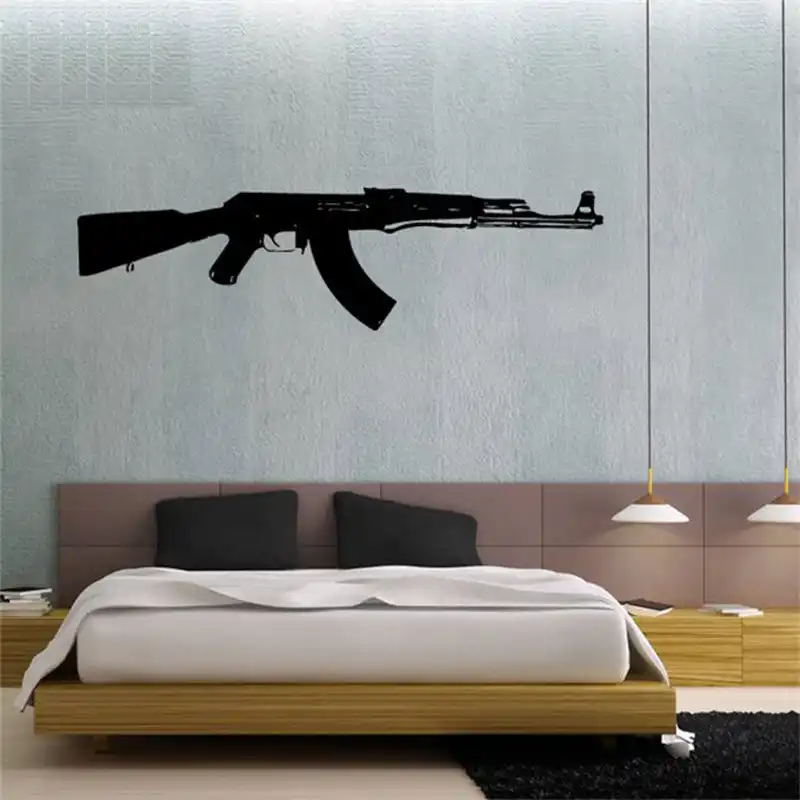 للبيع ملصقات الحائط ملصق الفينيل Ak 47 سلاح السلاح العسكري ديكور 5 أحجام Military Decoration On Salegun Decor Aliexpress