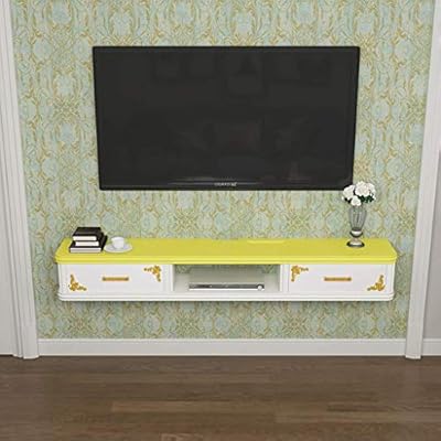 رف تلفاز معلق على الحائط رف حائطي على الحائط مجموعة خزانة معلقة على الجدار صندوق علوي جهاز راوتر معدات وسائط متعددة رف تخزين رف السلع رف وحدة التحكم التلفزيونية اللون أصفر الحجم