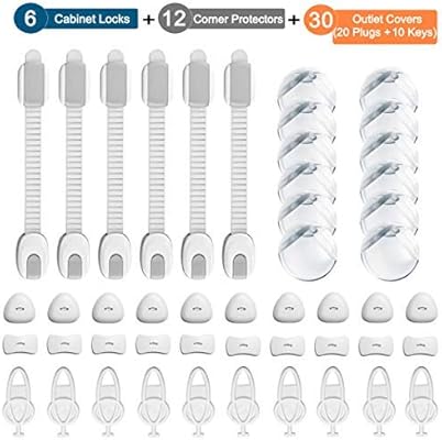 طقم حماية الطفل من 48 قطعة 6 قفل خزانة أمان للأطفال 12 واق للزاوية الشفافة أغطية سدادة للقابس الكهربائية لسلامة الأطفال 20 قابس 10 مفاتيح Amazon Ae