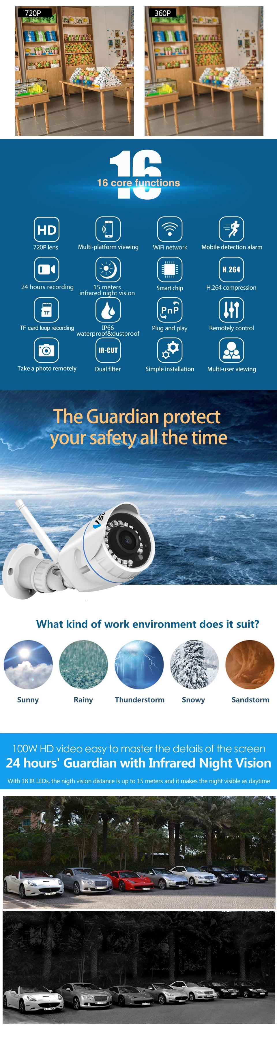 Vstarcam C17 Onvif واي فاي Wireles Ip كاميرا الأمن في الهواء الطلق 720p مقاوم للماء Ip66 شبكة Hd كاميرا تلفزيونات الدوائر المغلقة دعم 128g بطاقة Sd في كاميرات المراقبة من الأمن والحماية على