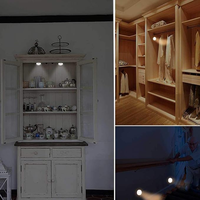 أضواء Led Puck من Goglor مزودة ببطارية تحكم عن بعد تعمل تحت الخزانة وإضاءة ليد كلوزت مثبت إضاءة ليلي أبيض دائرية Amazon Ae
