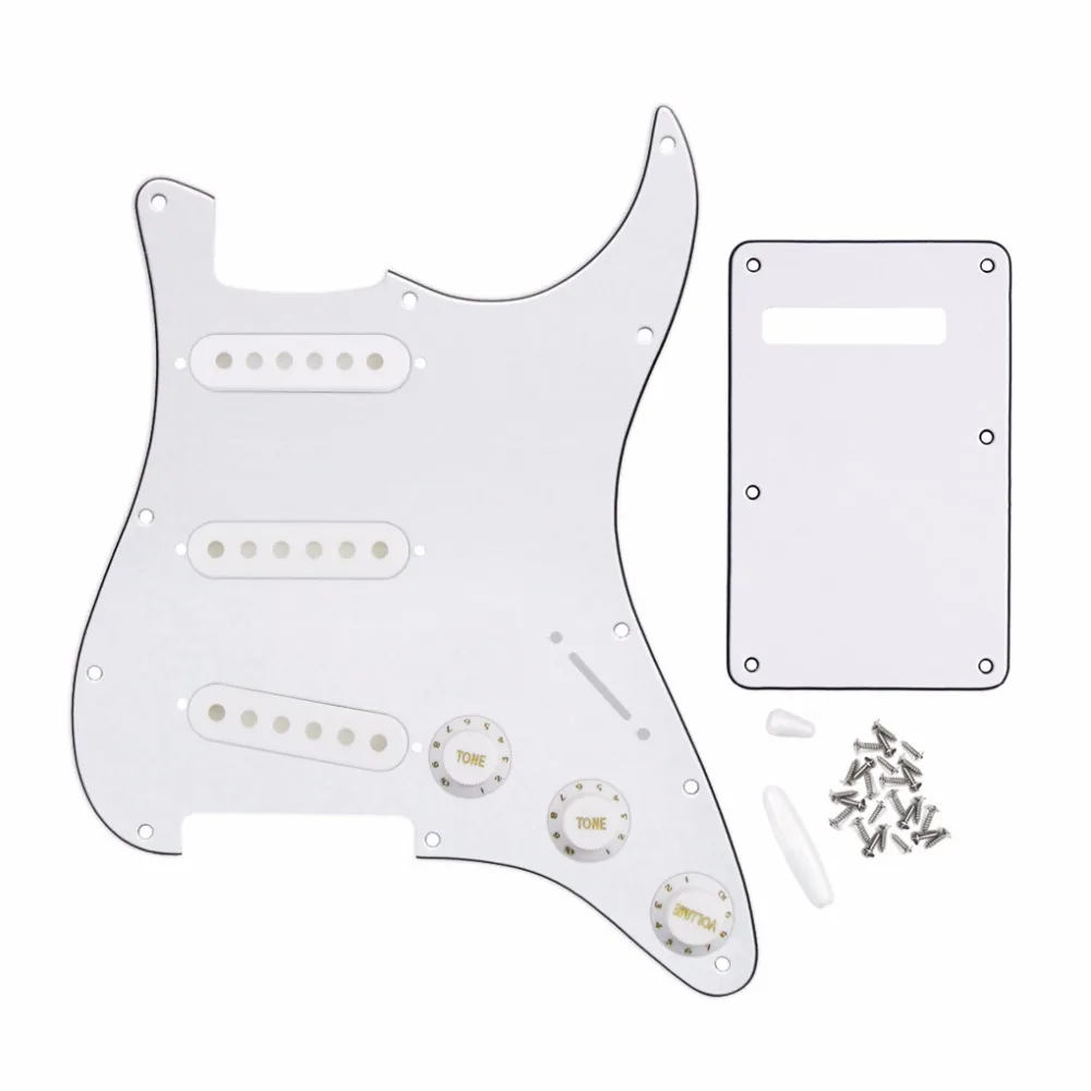 مجموعة من 3ply الأبيض Sss Pickguard عودة لوحة بيك أب يغطي 2t1v المقابض التبديل تلميح الضربة بار تلميح ل 11 حفرة Strat الغيتار أجزاء في إكسسوارات الغيتار وقطع غياره من الرياضة والترفيه على