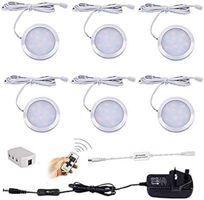 طقم إضاءة المطبخ تحت الخزانة Led من آيبو قابل للتعتيم مع ريموت تردد راديو لاسلكي قابس المملكة المتحدة 6 عبوات دائرية العرض 240 فولت Led 12 واط تحت مصباح عداد خزانة