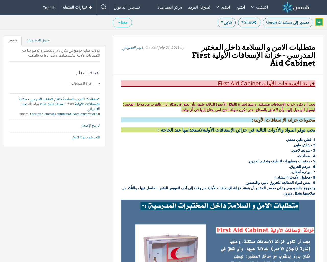 متطلبات الامن و السلامة داخل المختبر المدرسي خزانة الإسعافات الأولية First Aid Cabinet Shms Saudi Oer Network
