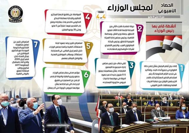 بالإنفو جراف الحصاد الأسبوعي لمجلس الوزراء خلال الفترة من 2 حتى 8 مايو 2020 تقارير وقضايا