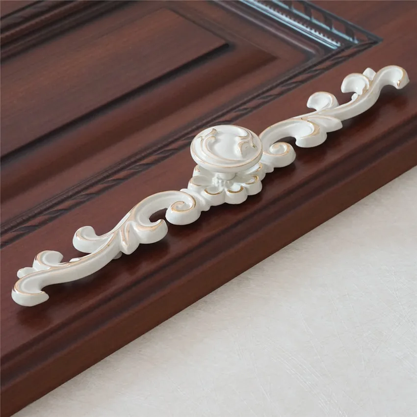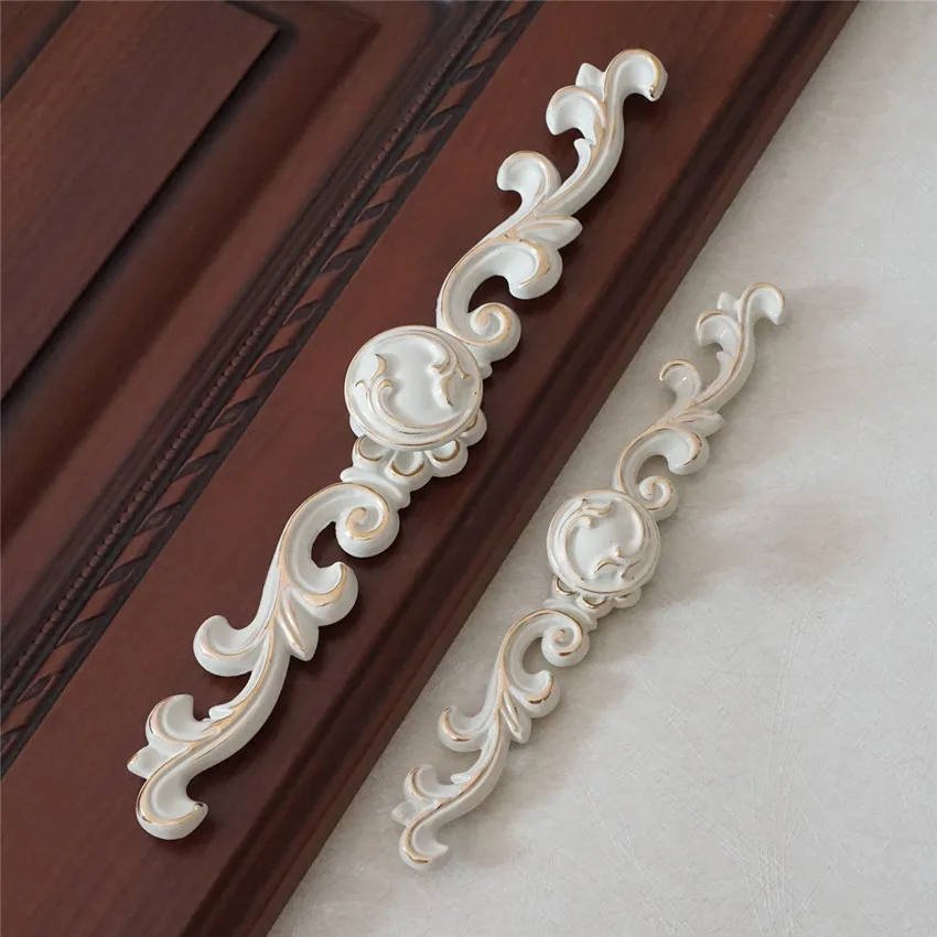 شراء رث شيك مقابض أدراج التأثيرات مقابض تسريحة درج سحب مقبض الكفالة العاج الأبيض الذهب مقبض كابينة عودة لوحة الفرنسية المطبخ رخيص