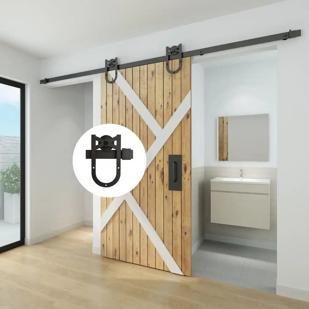 فدية Diyhd السهم عجلة انزلاق باب الحظيرة الأجهزة ريفي خشب أسود الباب انزلاق باب الحظيرة الأجهزة 1 5 M 3 M المسار جديد