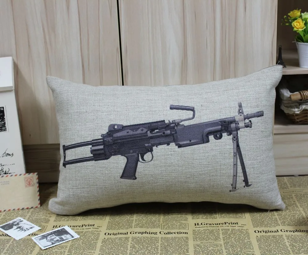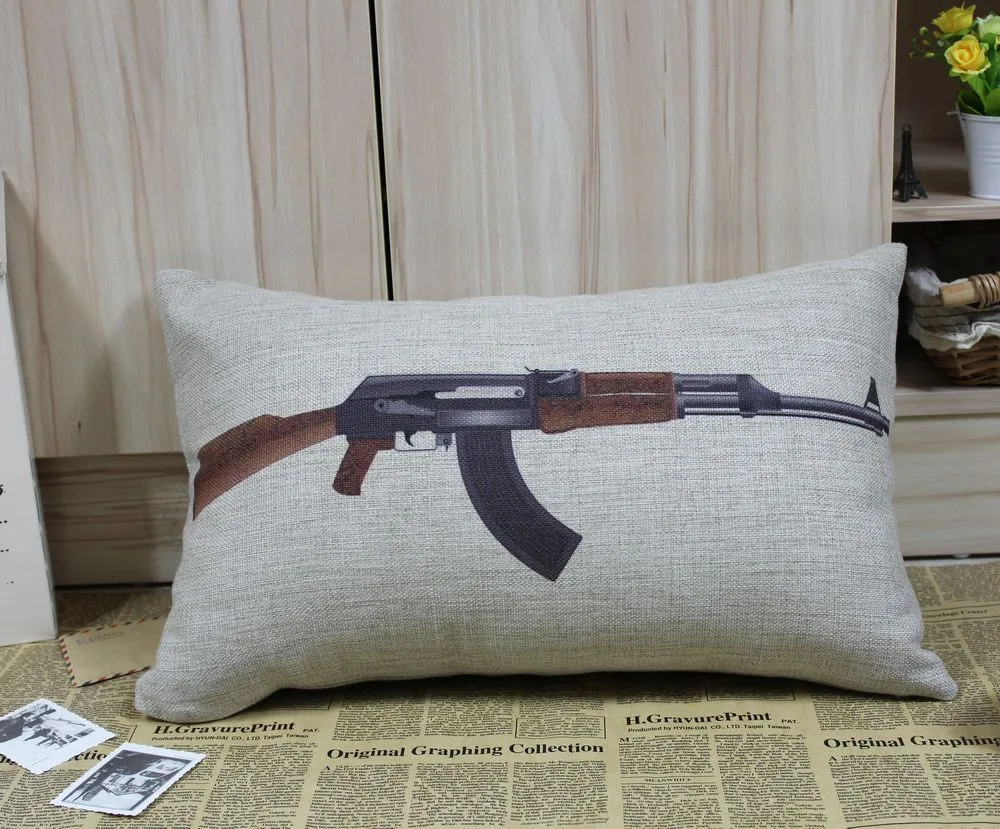 لينكويل 1 قطعة 50 سنتيمتر 30 سنتيمتر الأسود بندقية الذراع النار Ak47 M16 بندقية مسدس Ump45 M249 غطاء من الكتان للوسائد كيس وسادة لمحبي العسكرية في غطاء مسند من المنزل والحديقة على