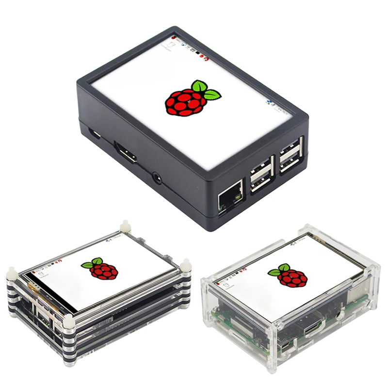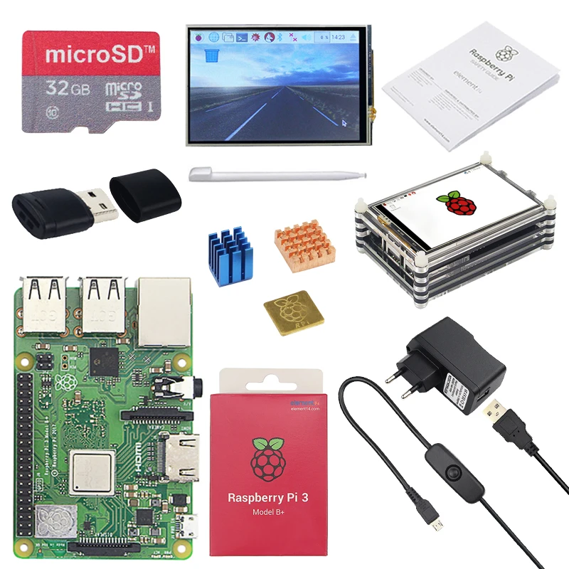 التوت الأصلي Pi 3 نموذج B زائد مع واي فاي وبلوتوث 3 5 بوصة تعمل باللمس محول الطاقة علبة بالوعة الحرارة Pi 3 B Plus 3b في لوحة عرض من الكمبيوتر والمكتب على