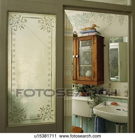 محفور لوحة الزجاج إلى داخل باب بسبب تقليدي حمام ب تاق لشىء سور خزانة ألبوم الصور U15381711 Fotosearch