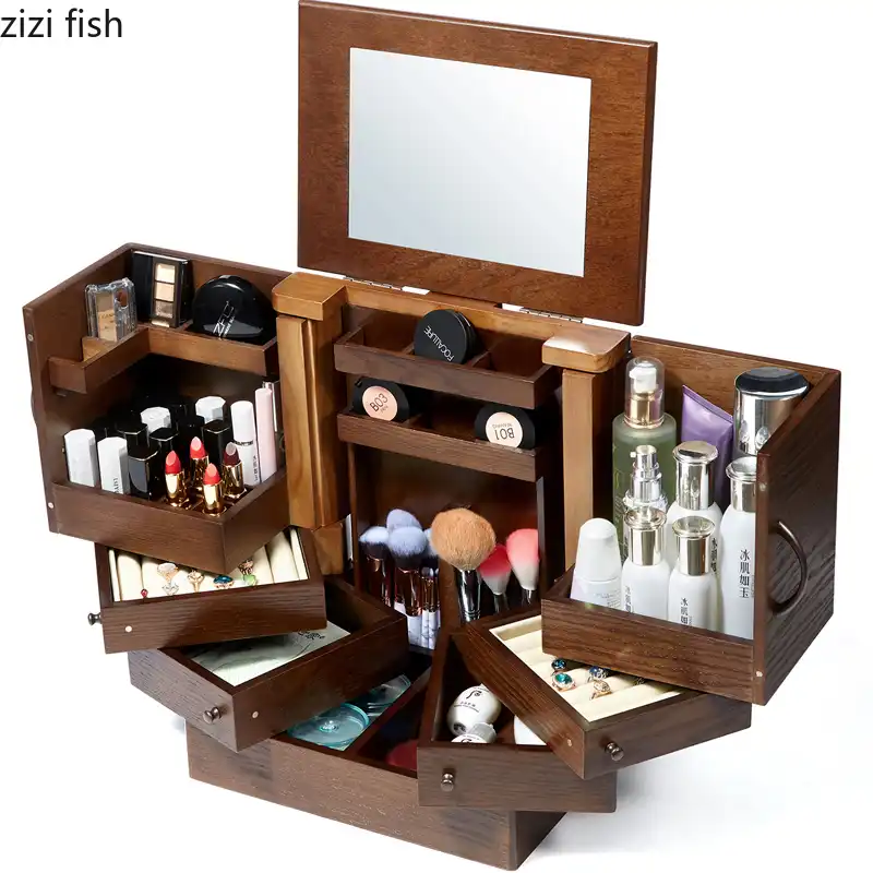 29 21 32 سنتيمتر مستحضرات التجميل مرآة كبيرة صندوق تخزين المجوهرات صندوق تخزين سطح المكتب الأوروبي الرجعية خشبية صندوق تخزين منضدة الزينة منظمو الماكياج Aliexpress
