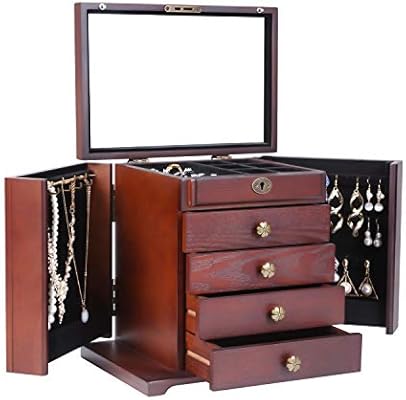 صندوق مجوهرات خشبي كبير للسيدات صندوق تخزين مجوهرات مرآة مرآه وقفل مدمج نمط منحوت علوي 30 سم طول 21 سم عرض 26 سم ارتفاع خشب بني 11 9x8 1x10 7 Inch Amazon Ae