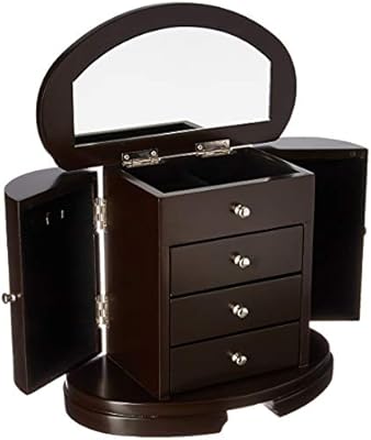 خزانة مجوهرات خشبية أنيقة من Uniware مع 4 أدراج مرآة وساقين بيضاء خشب بني داكن 10 3 X 5 3 X 8 8 Amazon Ae