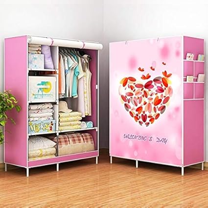 أدوات منزلية من Meritstore مجموعة ملابس بسيطة عصرية من قماش خزانة ملابس خاصة تركيب أنبوب فولاذي مقوى لتخزين الإطار وردي Amazon Ae