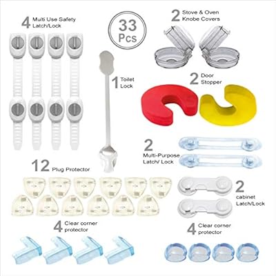 مجموعة أمان الأطفال من تشوكو مجموعة حماية الأطفال من 33 قطعة مع أقفال للخزائن مزاليج واقيات للركان واقيات مقبس كهرباء أغطية لمقبض الفرن قفل المرحاض واقيات للأبواب Amazon Ae