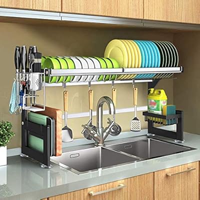 مصفاة مطبخ من أوفر بالوعات مصفاة أطباق من الفولاذ المقاوم للصدأ قابلة للتعديل على رف الحوض لتخزين مستلزمات المطبخ رف واحد أسود 62 سم 24 بوصة Amazon Ae