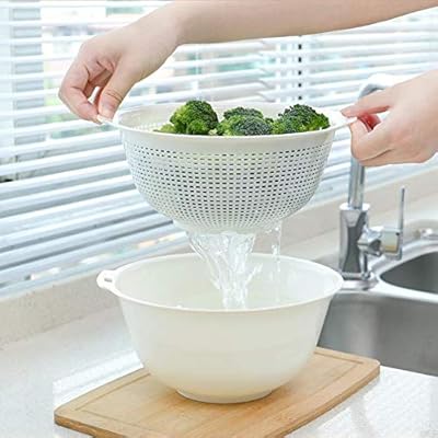 سلة بلاستيك مزدوجة للخزانات من بوبوان بغطاء متعدد الغسيل مصفاة فواكه وسلة تصريف الخضراوات مصفاة غسيل 21 5cm X 9 8 Cm Amazon Ae