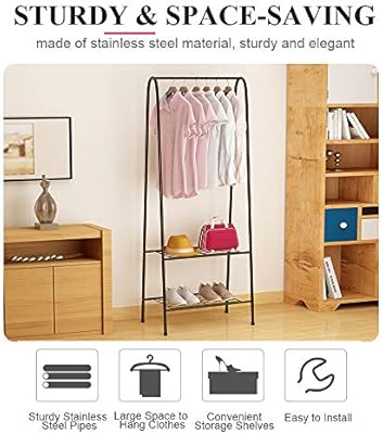خزانة مستقلة منزلية جديدة رف ملابس متين مزدوج القضيب للتعليق من طبقتين خزانة محمولة مع أرفف سفلية لتخزين الأحذية أسود Amazon Ae