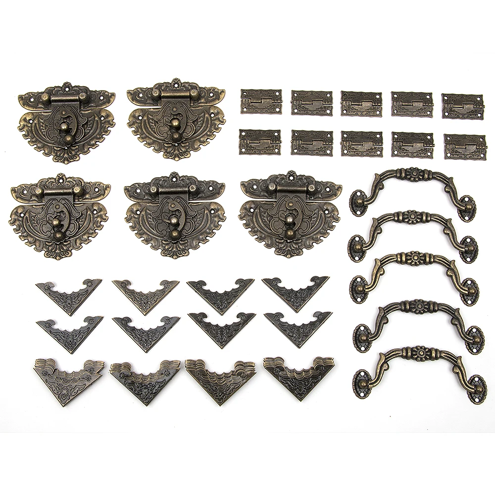 60 قطعة درج مجوهرات صندوق خشبي خزانة أقفال أمان الباب هوك مزلاج بعقب مفصلات مقبض زوايا الزخرفية اكسسوارات أثاث في أرفف الزوايا من تجميل المنزل على Buy Unohama Club Store