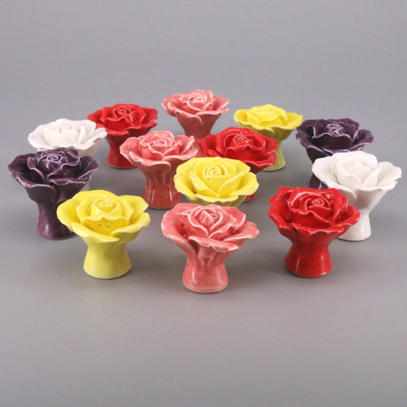 فدية 12 قطع الملونة السيراميك روز مقابض المطبخ مقابض خزانة مقابض مضمد خزانة أثاث غرف نوم اطفال مقبض حديث