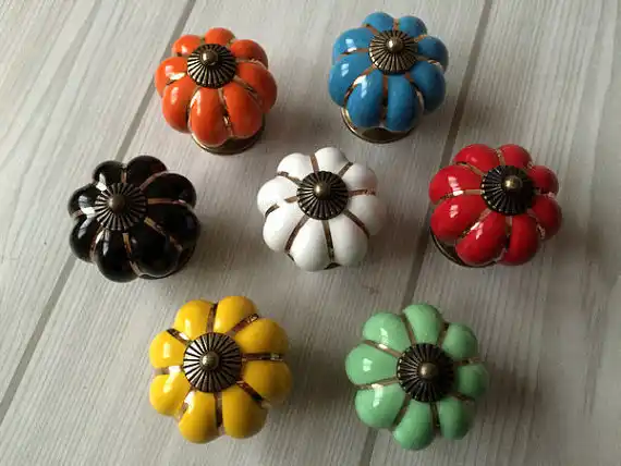 جديد جميل درج مقابض للخزانة اليقطين على شكل السيراميك مقابض مقابض ملونة دولاب الحد الأدنى خزانة الباب مقابض للأدراج Aliexpress