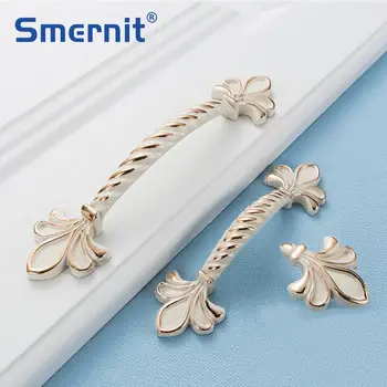 الأوروبي Lvory زهرة بيضاء زهرة الأثاث مقبض خزائن المطبخ انزلاق الباب مقابض أدراج خزانة دولاب دفع مقابض سحب مقابض للخزانات Gooum