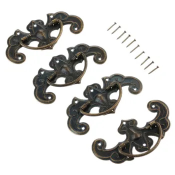 4 قطعة العتيقة برونزية الأثاث مقابض المجوهرات صندوق خشبي خزانة الباب درج سحب مقبض المطبخ دولاب خزانة مقبض ومقبض Leather Bag