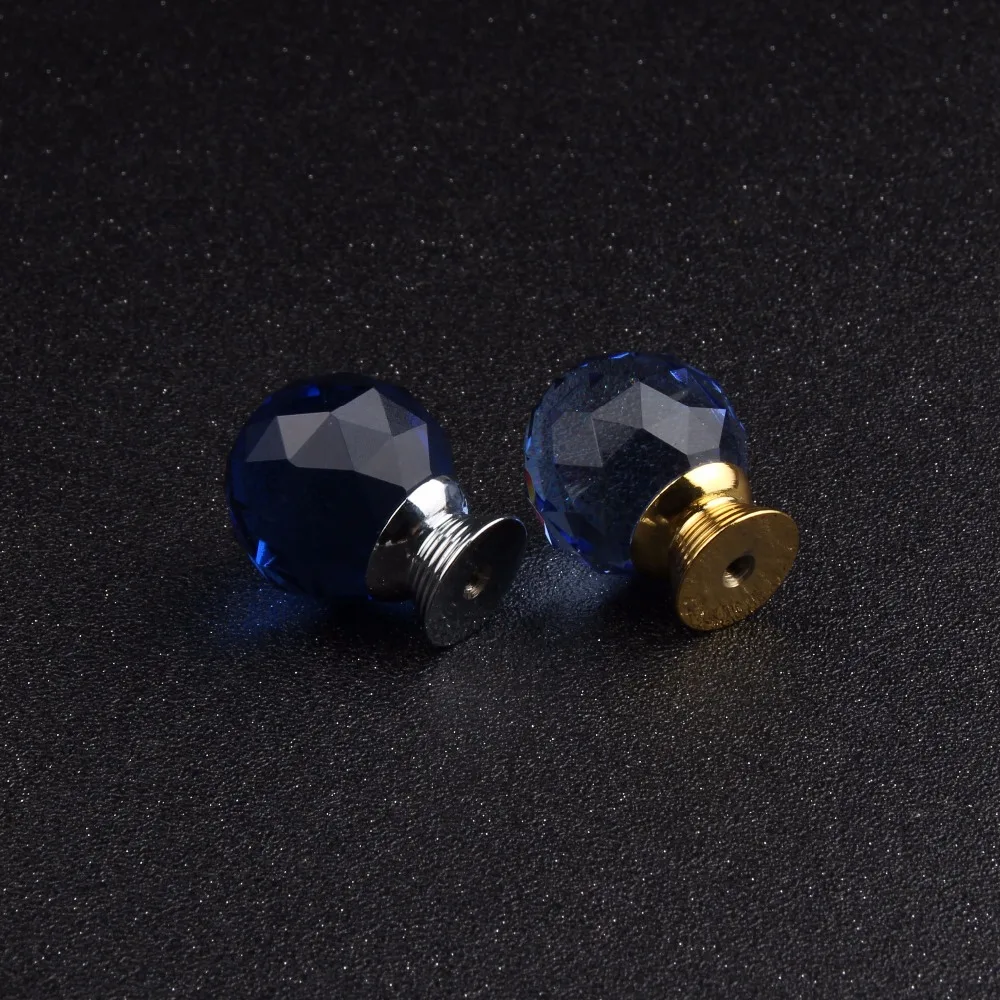 صفقة 30 ملليمتر K9 الكريستال الأزرق زجاج الكرة مقبض ذهب فضة قاعدة الملحقات مقبض درج خزانة أثاث تسريحة 10 قطع الساخن بيع حديث
